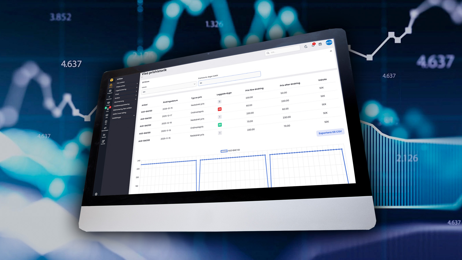 I Askås admin hittar du prishistorik för varje enskild artikel direkt på artikelns startsida. Här kan du snabbt se loggade prisändringar, ordinarie pris och kampanjpris, vilket gör det enkelt att planera när du kan sänka priset eller starta en kampanj.